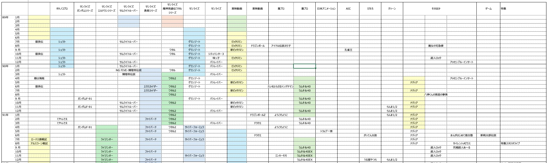 その中でも葦プロ[94]とかタツノコプロ[95]が、食い込んでくるっていう感じのがあって。で、AIC[96]がちょっと入ってくる。