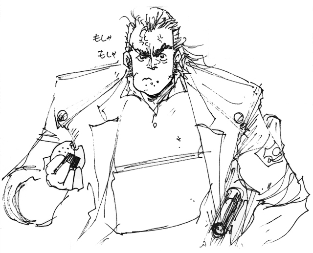 松本零士…宇宙空間とメーターな。それもやってたけど、元になったのは寺沢武一の『コブラ』[9]だな。その当時のキャラクターがずっと色濃く出ていて、『鬼屋』にも出てるし、『HOOLIGANS』にも出てる。そこで基本のキャラクターが出来上がった。だいたい主役が粗暴で、背が高くて、体がでっかい。筋肉質で、体力があって。あと、メガネで、正体がわかんなくてシニカルだっていうのが脇にいて、そういう構造がそこで出来上がってる。