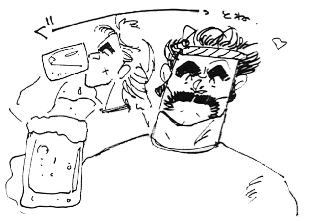 そうそう、こういうごっつい親父に限って、意外に息子がいなくて娘だけだとかさ、家に帰ると女系であんまり頭が上がらないとかって、結構あるじゃん。で、この鬼屋の親父もそういうタイプでしょ。だから類型ではあるんだけど、いざやってみると、そういうものをこの絵柄で描いたのはたぶん少ないんじゃなかろうかって思いながらやってた。