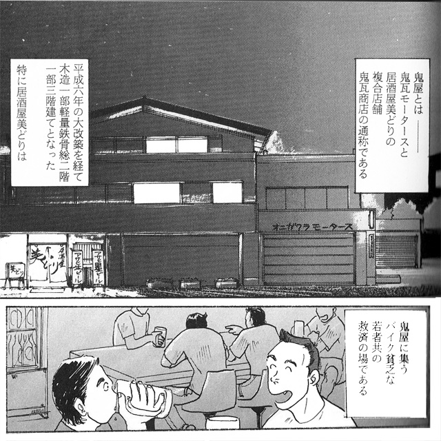 鬼瓦モータースはモデルになったところがちゃんと天童市にあって、店舗の内部の構造とかもほぼ同じ。飲み屋も…今はもうないけど、昔の飲み屋だよね。ガラガラって戸を開けるとテーブルがあって、ビールサーバーがあってっていう、とりあえず数だけをこなす飲み屋っていう感じ。
